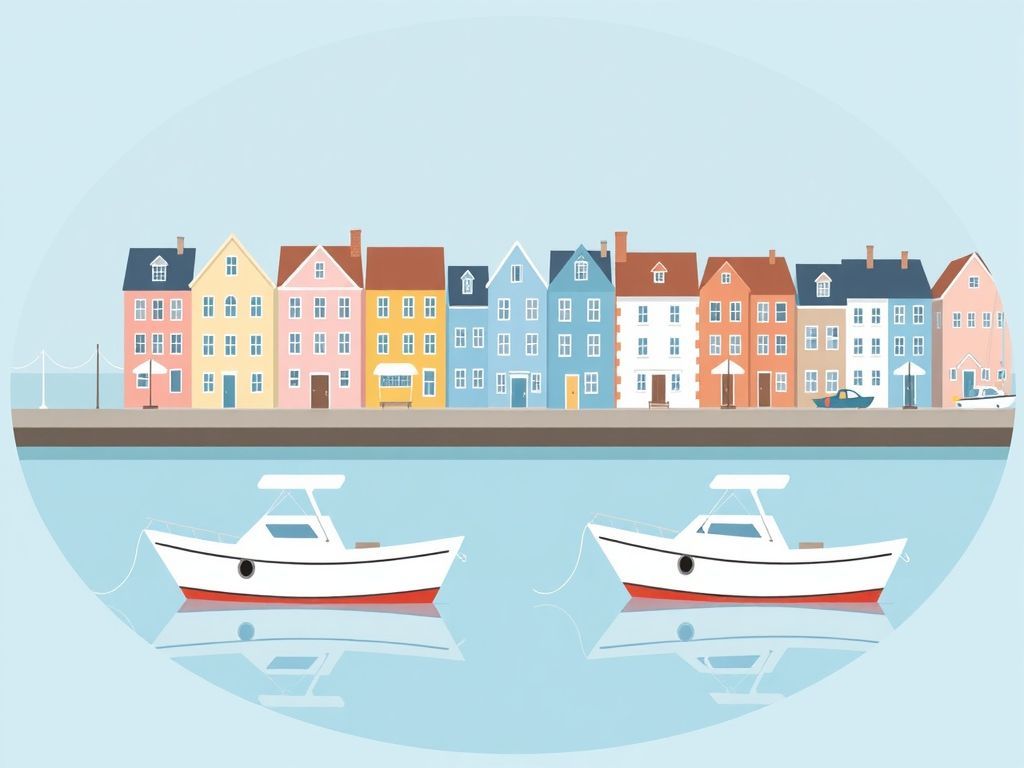 The ships docked in the harbor to avoid the storm approaching from the open sea.